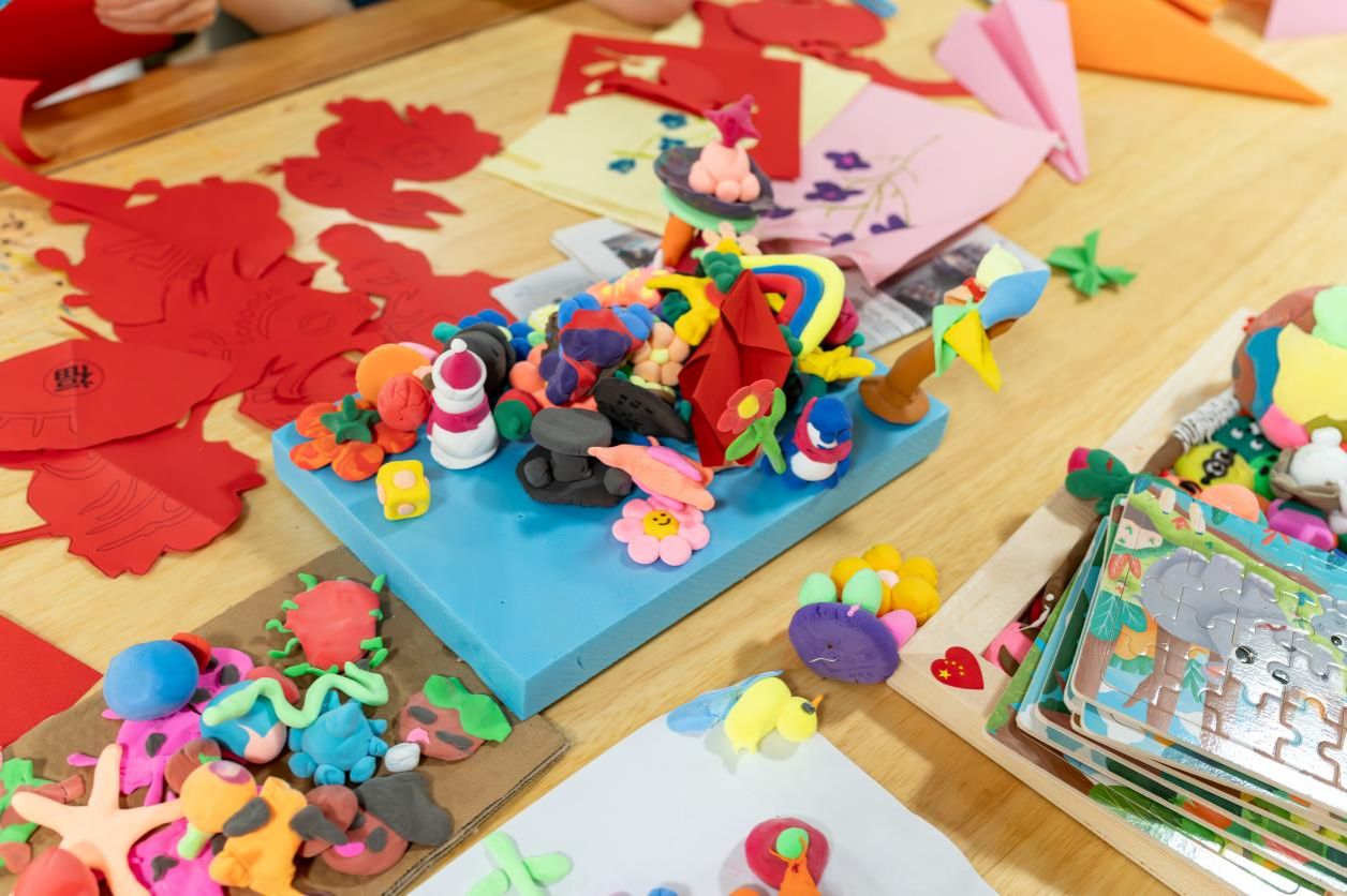 活動中,最動人的莫過于孩子們之間的分享。一個小姑娘把捏好的“小蛋糕”分給旁邊的小伙伴,說:“這個給你,我們一起當小廚師。”隊員們趁機教他們互相幫忙:你幫我遞紅色粘土,我幫你把作品擺穩當,小小的工作臺成了培養友愛與合作的小天地。