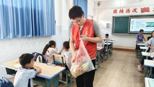 圖 2 志愿者為孩子們分發糖果