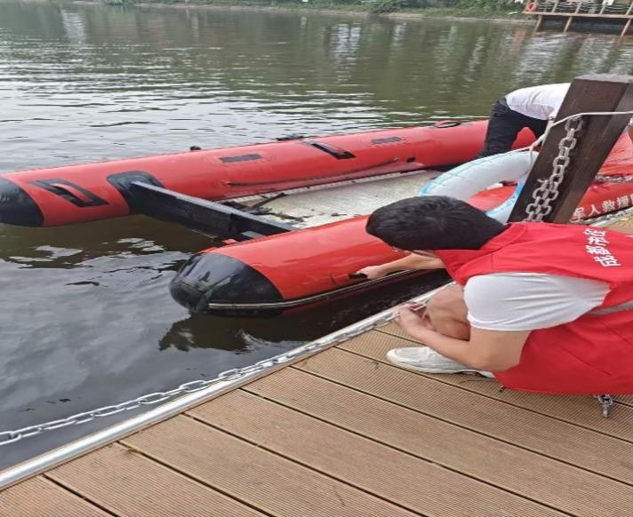 實操培訓環節,實踐隊聚焦水域救援裝備運維。在工作人員指導下,隊員們圍繞橡皮艇展開學習,從氣囊密封性檢查到動力系統調試,從安全繩規范固定到應急救生圈配備,事無巨細。“這些裝備是救援的‘武器’,一絲馬虎都可能耽誤大事!” 工作人員的叮囑,讓隊員們深知責任重大。大家兩兩一組,互相配合,仔細排查裝備隱患,反復演練操作流程,在汗水與專注中,掌握應急救援技能,更筑牢為群眾安全護航的決心。
