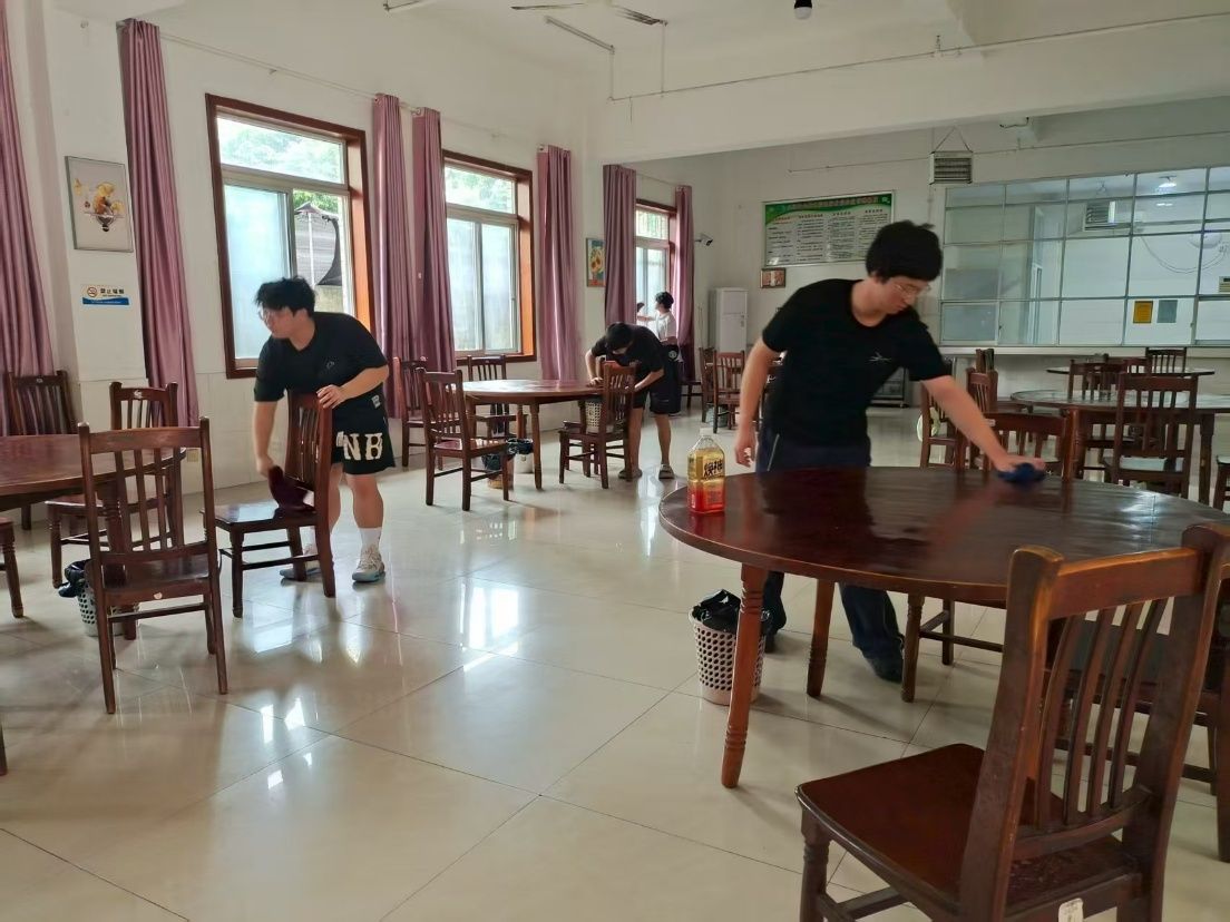 活動伊始,志愿者們迅速集結,在敬老院工作人員的引導下明確分工。趙林杉主動承擔起敬老院庭院的清掃任務,手持掃帚仔細清掃地面落葉與碎石,遇到黏附在地面的頑固污漬,他還蹲下身子用手一點點摳除,確保庭院每個角落都干凈整潔;鐘森琪則負責公共走廊的清潔工作,他推著拖把從走廊一端向另一端有序擦拭,同時留意墻面扶手是否積塵,不時用抹布輔助清理,讓走廊環境煥然一新;譚補重點清理雜物堆積的角落,他將散落的舊紙箱、廢報紙等分類整理,既能避免雜物占用空間,又為后續垃圾分類處理提供便利,還主動幫老人將常用物品歸位,貼心詢問老人使用是否方便;黃宇杰在完成自身負責區域清掃后,發現敬老院活動室地面有細小灰塵,便再次拿起掃帚進行二次清掃,同時協助其他志愿者搬運清潔工具,確保活動高效推進。