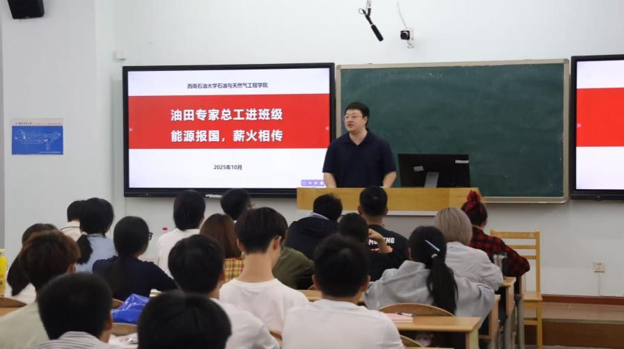 2025年10月16日晚,為幫助同學(xué)們錨定方向、樹立理想、深化專業(yè)認(rèn)知,2024級石工9班、2024級石工10班、2025級石工11班、2025級海油2班在思學(xué)樓A211共同舉行“專家總工進(jìn)校園”活動。本次活動由班主任郭子熙老師、陳祥老師主持,輔導(dǎo)員謝詩雪老師、蒲星宇老師、上官自然老師出席,特邀中石化西南油氣分公司張玉龍專家、中石油西南油氣田分公司李澤專家重返母校,圍繞“青春揚帆,夢想啟航”主題,與大一、大二年級學(xué)子進(jìn)行了深入交流。