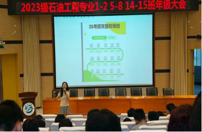 為了幫助同學們精準把握深造趨勢、科學規劃升學路徑,石工院于9月5日在思學樓A114召開2025年秋季新學期年級大會,面向2023級石油工程1-2、5-8、14-15班共279名學生,重點圍繞“深造規劃與學業發展”展開系統分析與動員。會議由輔導員肖雨桐主持。