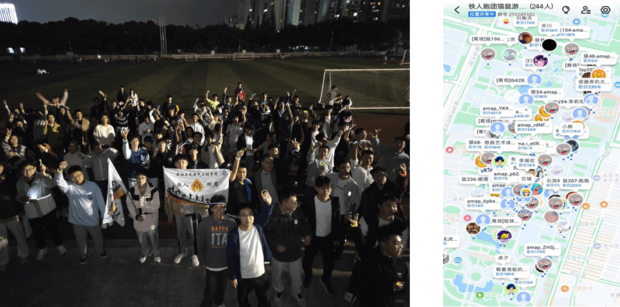 本次活動(dòng)規(guī)則設(shè)計(jì)簡(jiǎn)明而富有趣味。參與者以熒光棒區(qū)分陣營(yíng)——“杰瑞鼠”右手佩戴兩根,“湯姆貓”佩戴一根。游戲過(guò)程中,“湯姆貓”觸碰到“杰瑞鼠”即視為捕獲成功,被捕者需交出一根熒光棒并轉(zhuǎn)換陣營(yíng)為“貓”。最終,在規(guī)定時(shí)間內(nèi),持有熒光棒最多的“貓”和存活時(shí)間最久的“鼠”獲得勝利。為確保活動(dòng)安全有序,范圍限定在校園內(nèi)照明良好的公共區(qū)域,禁止進(jìn)入室內(nèi)。游戲開(kāi)始前,全體參與者統(tǒng)一更換指定頭像并開(kāi)啟位置共享,“杰瑞鼠”享有5分鐘的先行躲藏時(shí)間,隨后追逐戰(zhàn)正式開(kāi)始。