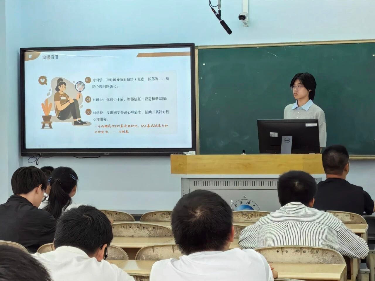 活動(dòng)部陳勛昊部長(zhǎng)以趣味 PPT 講解 “如何營(yíng)造班級(jí)良好氛圍”,明確心理委員 “老師小雷達(dá)、同學(xué)樹(shù)洞、班級(jí)小太陽(yáng)” 的定位,提出三大實(shí)操建議: