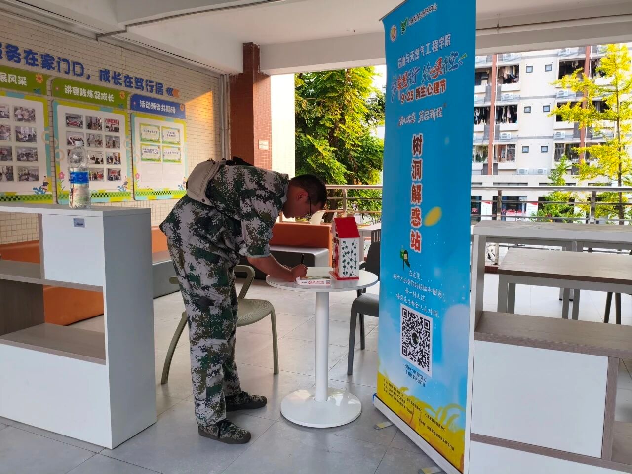 在925心理活動節的那一天,心理服務站在篤行居C區2樓連廊舉辦了線下“心之惑”專屬信箱,同學們軍訓完積極參見,寫出了他們對于大學生活的困惑和對未來生活的期許,我們收集了同學們的困惑之后,正在積極地給同學們回信解惑。