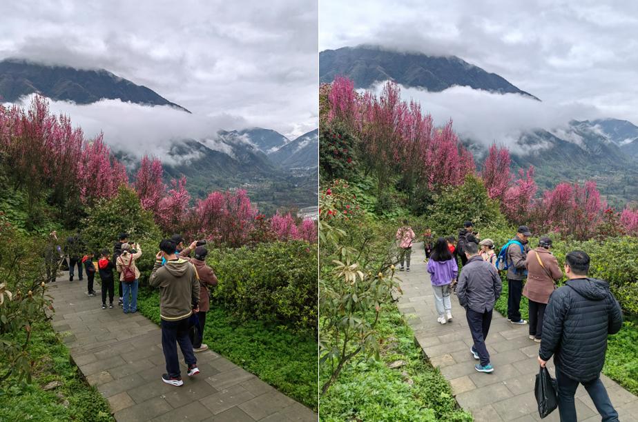 虹口花谷坐落于虹口國家森林公園內(nèi)。田間地頭,嫁接的獼猴桃長出新芽,一派生機(jī)勃勃的春景映入眼簾。走進(jìn)花谷,樹木蔥蘢,漫山桃花,色彩斑斕,高山杜鵑,悄然盛放。雨后的空氣中,帶著泥土和芳草的氣息,沁人心脾。大家沿著登山步道一路前行,近處小路蜿蜒,繁花似錦,遠(yuǎn)處群山漸翠,薄霧繚繞。