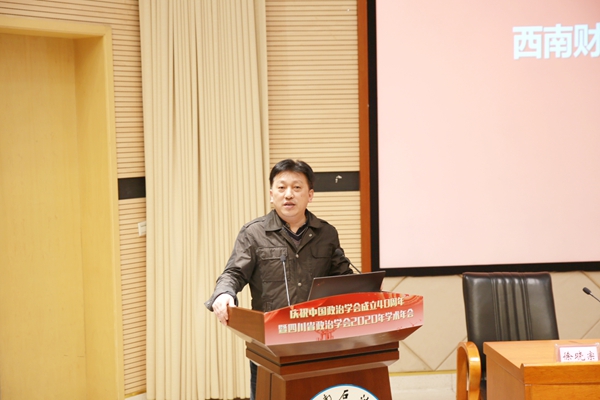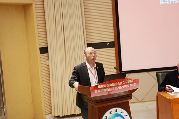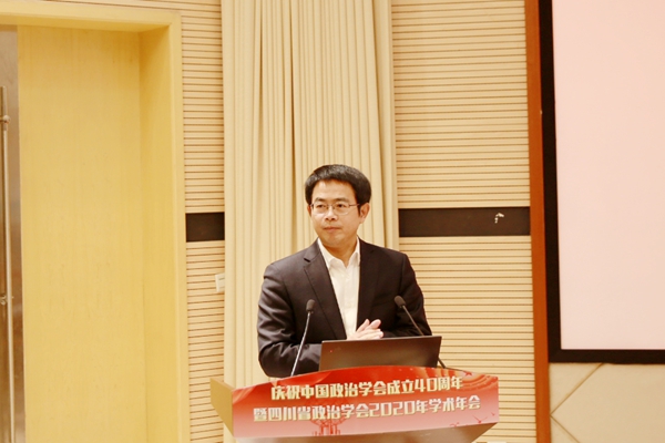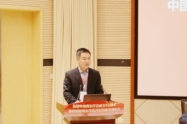 陳井安在報告中總結了學會過去一年的工作,他說,今天我們舉辦學術研討會,也是慶祝中國政治學會成立40周年的重要組成部分。希望我們在中國政治學會的帶領下,把四川政治學會建設成為凝聚力量,引導實踐,學科專業的學術共同體,為推進新時代中國政治學發展貢獻四川力量。他強調,四川政治學會要學深悟透黨的十九屆五中全會精神,把政治學理論研究與新時代中國的偉大實踐緊密結合起來。他表示,學會將繼續秉承服務理念,在專委會設置、青年人才獎勵、重大課題和學科建設的聯合申報等方面,更好發揮學會整合省內資源和與中國政治學會溝通的平臺作用,為不斷推進四川政治學的學術共同體高質量建設而努力奮斗。
