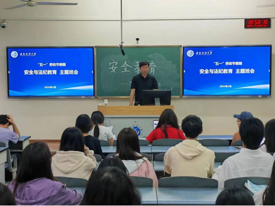 “五一”假期將至,為確保同學(xué)們度過(guò)一個(gè)平安、健康、充實(shí)、愉快的假期,4月29日,馬克思主義學(xué)院在博學(xué)樓B504教室,組織全院本科生召開(kāi)“五一”勞動(dòng)節(jié)假期安全與法紀(jì)教育主題班會(huì)。本科生輔導(dǎo)員李錦韜、宋永偉,學(xué)院全體本科同學(xué)參加。