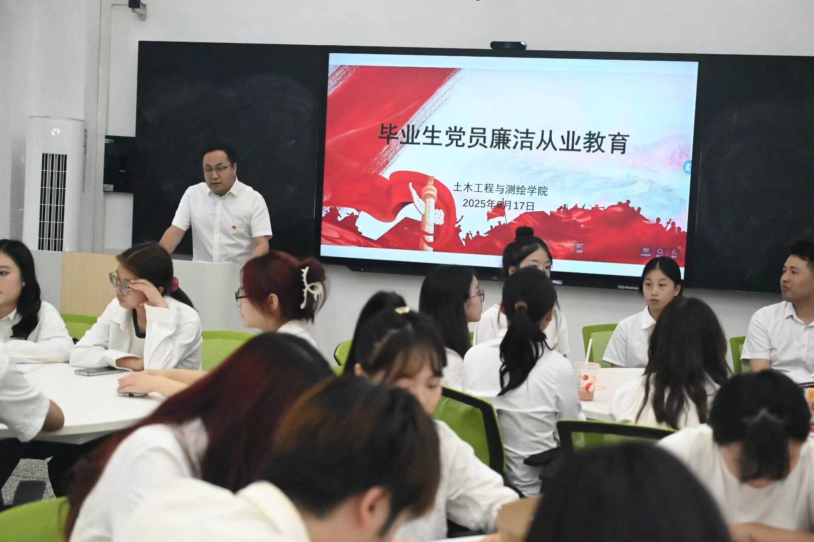為筑牢畢業(yè)生黨員廉潔從業(yè)思想根基,強(qiáng)化使命擔(dān)當(dāng)意識。6月17日,土木工程與測繪學(xué)院(南充)于第三教學(xué)樓3111教室,面向2025屆畢業(yè)生黨員開展了一場意義深遠(yuǎn)的黨課活動。