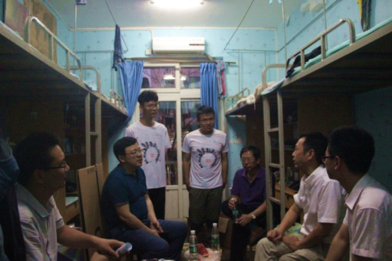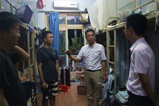 每到一間宿舍,領導們都會親切地與同學們交談,或回憶往昔、或了解現(xiàn)狀、或暢談未來,領導們熱切地關注著同學們走出學校后的情況,為考研成功和找到工作的同學們欣喜,為參加公招考試的同學們加油,給還處在迷茫期的同學出謀劃策。并鼓勵還未落實工作的學生要進一步增強信心,以良好的心態(tài)面對就業(yè)。