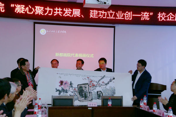 會議最后,西油聯(lián)合能源有限公司董事長黃彬、四川博能燃氣股份有限公司董事長楊德志及新都畫院代表參與校慶捐簽儀式。黃彬?qū)W院的熱情接待表示衷心的感謝并對深化校企合作充滿期待。