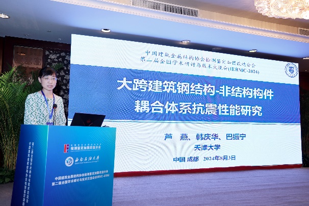 在8月3日下午的大會報告第二階段,蘆燕教授,余倩倩教授,余志祥教授和甘丹教授分別作了題為“大跨建筑鋼結構-非結構構件耦合體系抗震性能研究”、“鋼結構疲勞性能智能檢測與提升”、“金屬柔性網(wǎng)系統(tǒng)強動載沖擊響應智能化視覺監(jiān)測技術”和“加勁鋼管混凝土結構的研究”的大會報告。