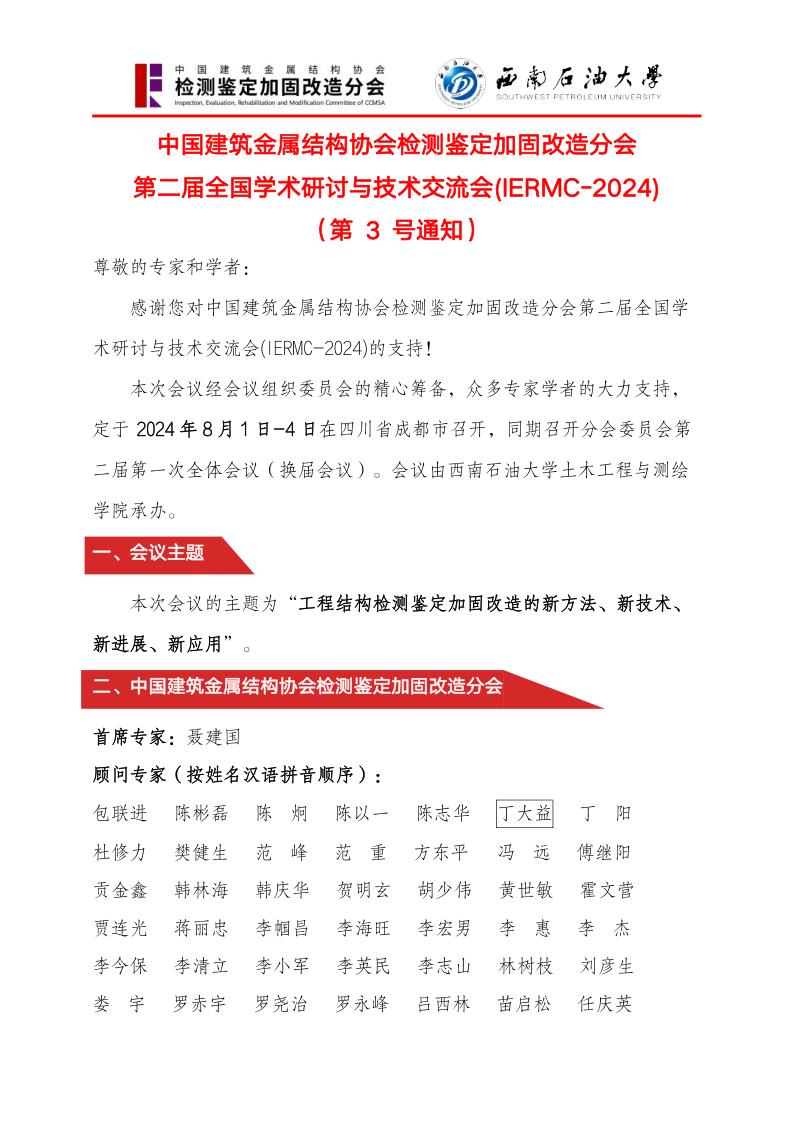 中國建筑金屬結構協會檢測鑒定加固改造分會第二屆全國學術研討與技術交流會3號通知