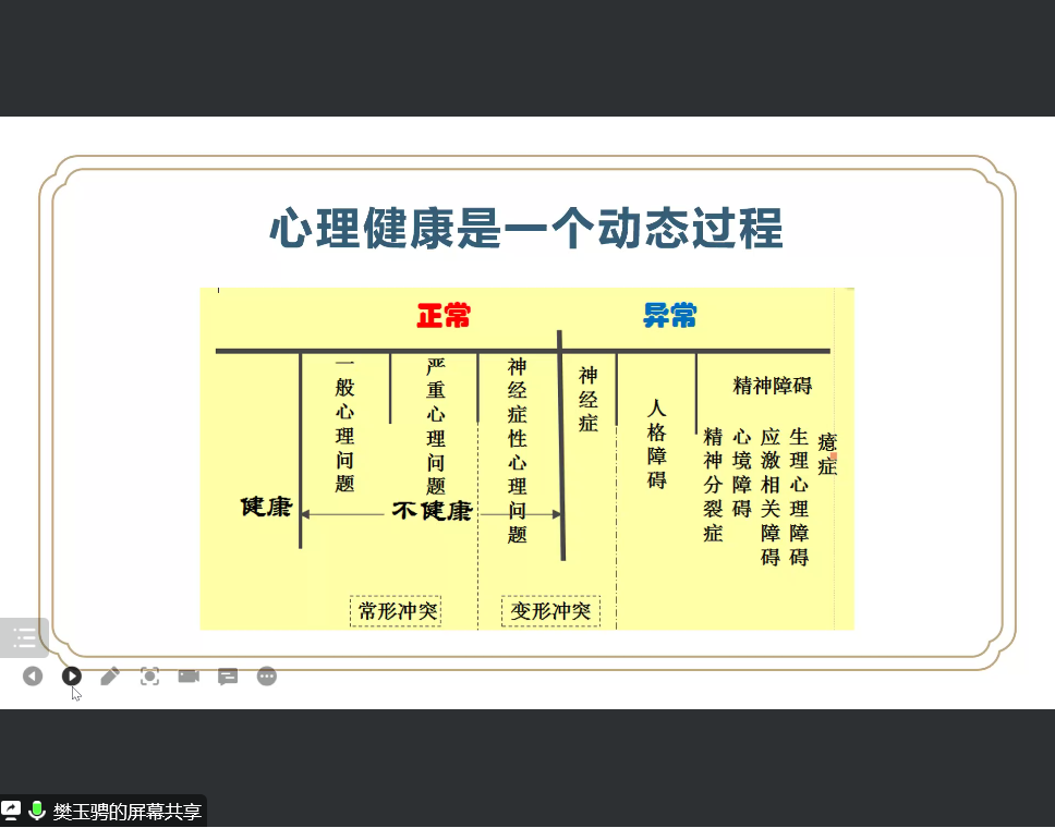 第二部分樊老師講到了交往的重要性與必要性,說(shuō)明心理問(wèn)題都是人際交往出了問(wèn)題,強(qiáng)調(diào)交往前提是對(duì)他人感興趣。第三部分則著重于身體,樊老師列舉了一些常見身體問(wèn)題,指出其背后是心理問(wèn)題。最后樊老師希望同學(xué)們的心理問(wèn)題能及時(shí)解決,及時(shí)接受心理治療。