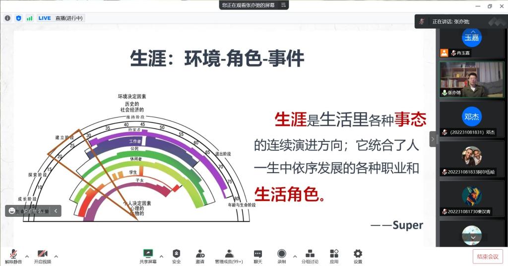 張亦馳老師以幽默的口吻帶領同學們從認識自己的生涯開始到引導同學們認識自我,了解自我,清楚認識自己想要成為什么樣的人。面對同學們對未來職業的茫然,老師也運用許多的專業知識來幫助同學們認識到職業的多樣性,同學們在充分認識自我以后也對未來的職業有了初步的認識。張亦馳老師上課風格幽默風趣,課堂內容豐富多彩,深受同學們喜愛。