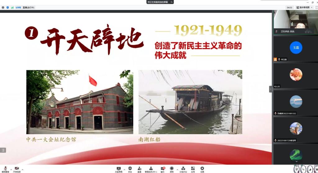 課堂中,吳放老師通過列舉新中國成立以前的革命烈士,以他們為背景,引出了黨的成立和發展,闡明了何為黨的精神,歌頌了黨的偉大領導。同時吳放老師結合真實案例講述黨的艱難發展,讓同學們深刻明白了在黨的領導下新中國的成立是多么的來之不易,也更讓我們堅信只要跟隨黨的步伐繼續傳承黨的精神,終有一天能完成中華民族的偉大復興!
