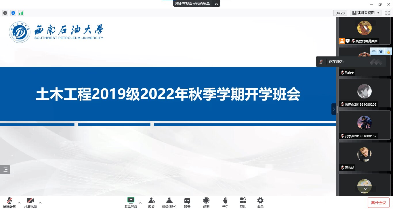 為統籌安排新學期各項事宜,2022年9月3日晚,土測院2019級土木工程專業在騰訊會議召開職業發展專題會,本次會議由吳老師主持,2019級土木工程專業全體同學參加會議。
