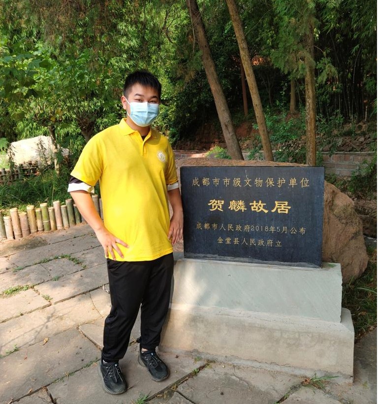 沿著石階繼續前行,紅色記憶實踐隊依次參觀了故居的堂屋,臥室,書房,廚房,花園,以及賀鱗及其父親、四弟的展館。故居的建筑是典型的川西四合院。共三重四合院,每重有四進,每進四合院沿中軸展開,兩邊有臥室,書房,讀譜房,也有祠堂,游廊,過廳,接待室,小姐樓,糧倉,酒窖等。