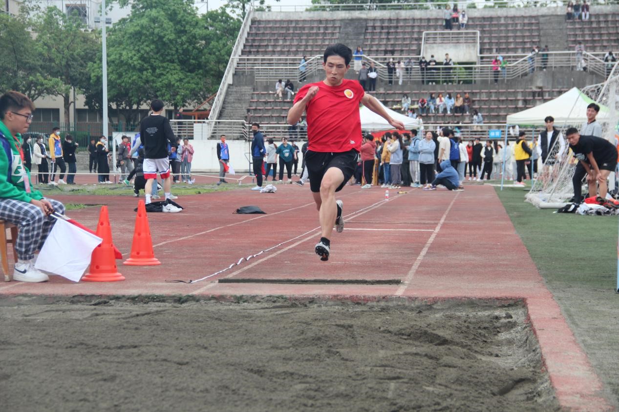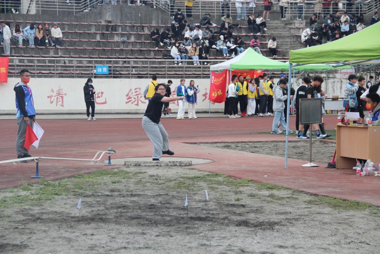 跳遠賽場上,我院跳遠選手“征戰沙場”,一次次沖刺加速,落地激起了雨水和汗水。不遠處,土測院的鉛球運動員們發揮穩定,他們用鉛球在空中畫出一條完美的弧線,讓在場的觀眾領略到力的美學。跳高場地上,自信滿滿的土測健兒助跑,起跳,在空中劃過一道弧線,沉身,過桿,下墜,落在墊子上,他們都一氣呵成。
