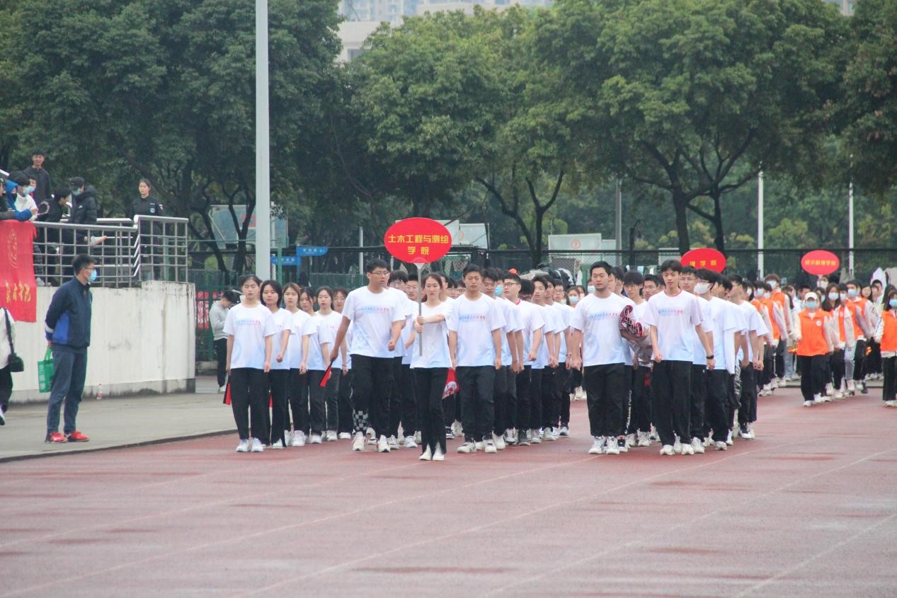 開幕式伊始,土測院運動員們身著白色短袖,下搭黑色長褲,邁著整齊的步伐進入會場,向觀眾們展示著他們朝氣蓬勃的一面。各方隊入場后,在場師生共唱國歌,裁判代表和學生代表分別宣誓,隨后領導宣布運動會正式開始。