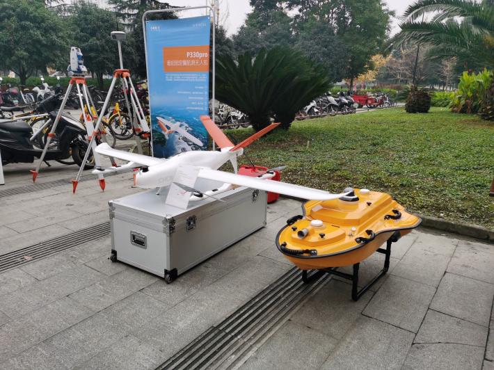 華測公司帶來了許多其公司研發的測量儀器以供展示,如P330pro垂起固定翼航測無人機、華測無人測量船等,并安排了公司專業人員對儀器進行分析講解,極大提高了學生對測量技能以及測量儀器的興趣,對學生今后的學習工作有積極促進作用。