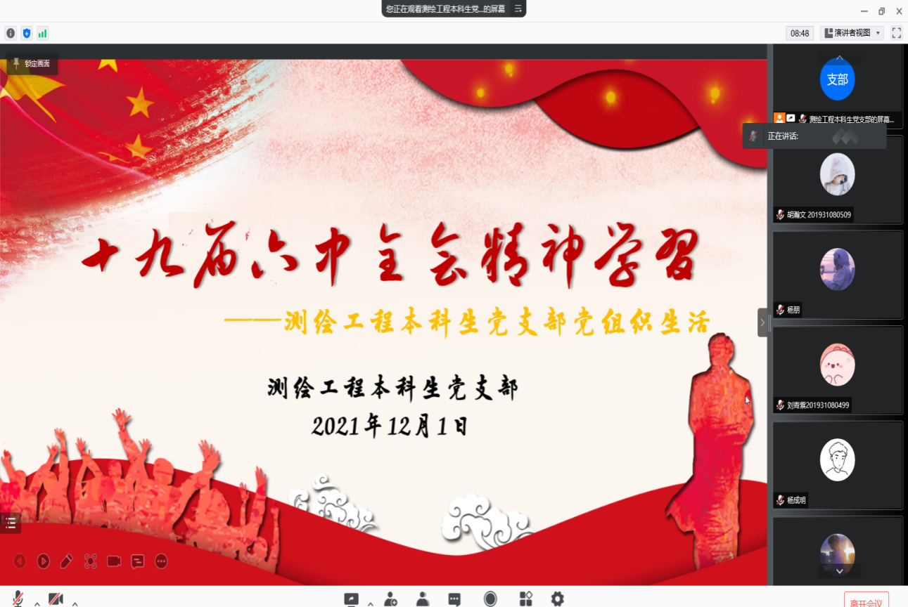2021年12月1日,西南石油大學土木工程與測繪學院測繪工程本科生黨支部召開了關于全面深入學習“十九屆六中全會精神”的線上黨組織活動。活動緊緊圍繞習近平總書記在大會上的重要發言展開了論述。