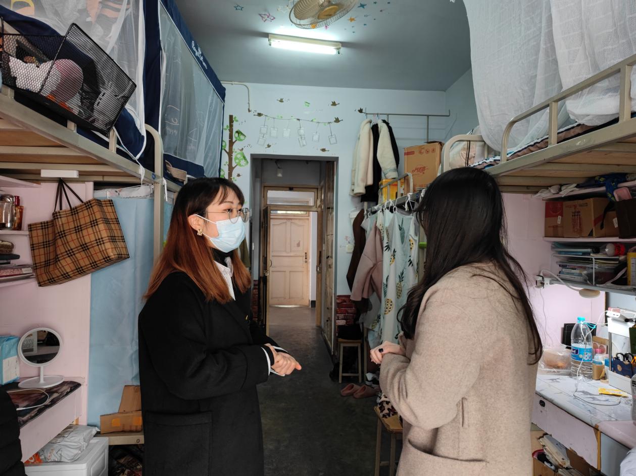 兼職輔導(dǎo)員黃俊梅向?qū)W生了解宿舍情況