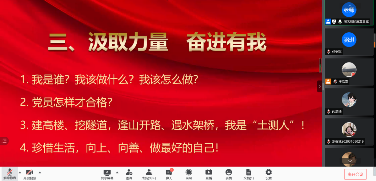 由于疫情原因,土測院于11月18日開展了入黨積極分子第一次線上黨課。我院黨委副書記周永華老師出席并給土測院110名入黨積極分子作了培訓。