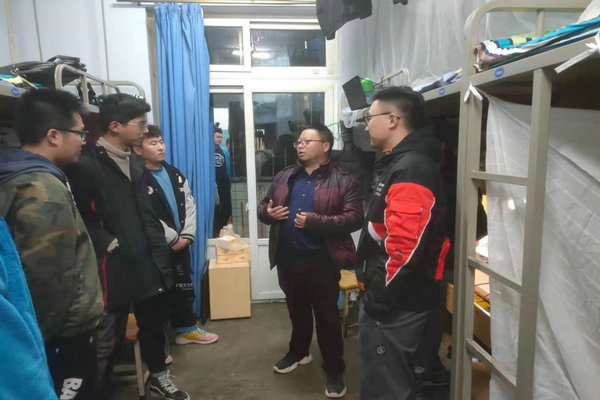 在活動期間,輔導員老師們一起走進學生宿舍,以學生喜聞樂見的形式為學生解讀十九大和兩會精神,并結合自身的學習經歷,從不同視角引導學生感受十八大以來祖國的變化,引導學生學習領會習近平新時代中國特色社會主義思想的深刻內涵和重要意義。今后各黨員教師還會繼續走訪學生宿舍,進一步推進思政教育進宿舍活動。另一方面還對宿舍進行了安全排查和衛生檢查,叮囑同學們遵守宿舍區的規章制度,杜絕安全隱患,提高安全意識,注意人身財產安全并養成良好的生活習慣。同學們也對學院的關心和老師的看望紛紛表示感謝。