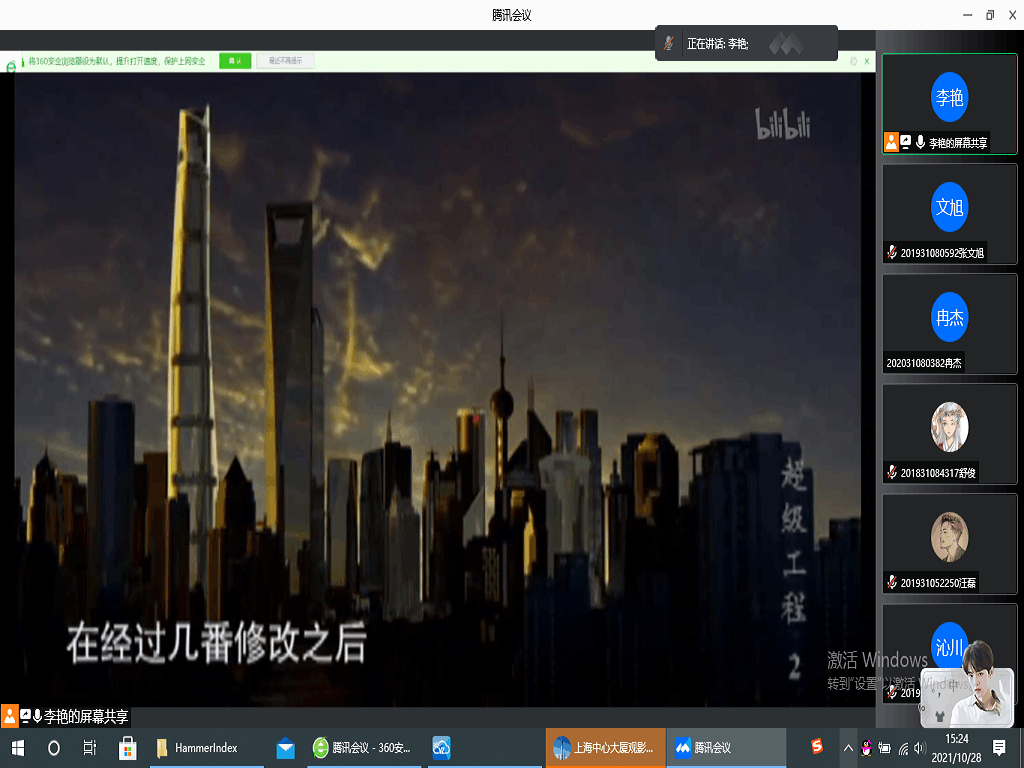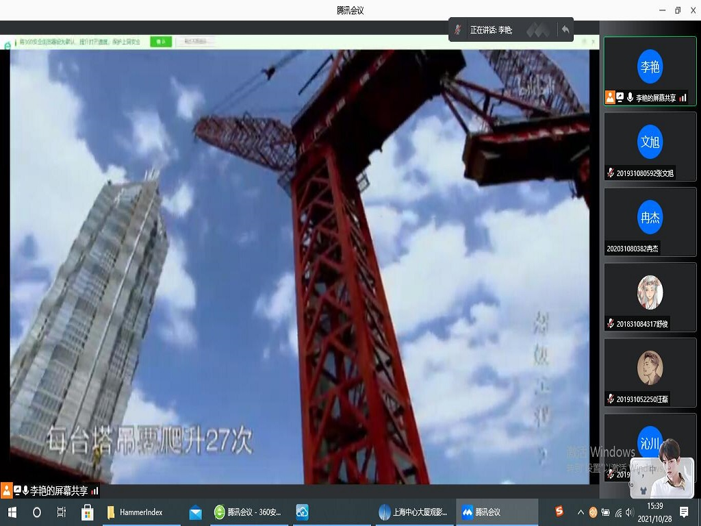 為激發(fā)同學(xué)們對建筑的喜愛之情、培養(yǎng)同學(xué)們的創(chuàng)新創(chuàng)業(yè)思維能力以及給同學(xué)們展示一個充滿活力與創(chuàng)造力的中國。西南石油大學(xué)建筑藝術(shù)協(xié)會于2021年10月28日下午14:30-16:30舉辦了以“領(lǐng)略科技創(chuàng)新,體會建筑之美”為主題的線上觀影活動——“上海中心大廈“紀(jì)錄片觀影活動。