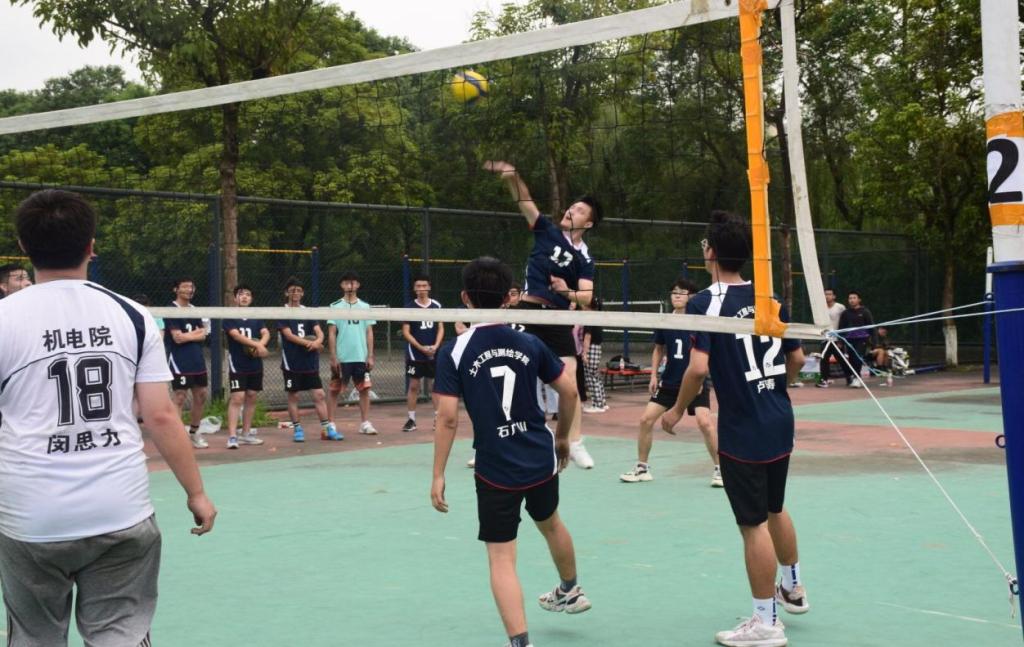 另一場男子排球也十分的精彩,土測院面臨的是機電院,在遇到土測院之前他們幾小場險勝,實力也不容小看。面對強敵土測院的健兒們欲招拆招,研究對方的進攻特點,在隊友的完美配合下土測院以15:12的優勢下取得了第一小場的勝利。強者與強者之間的戰斗從來不會輸在氣勢上,土測院雖然第二局惜敗了,在第三局仍然充滿斗志。土測男排面對強敵,打出自己的氣勢,展現了土測院學生不畏強敵,敢于拼搏,眾心如城的體育精神,他們滿腔熱情揮灑在球場之上。