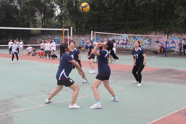 先把目光聚焦在女排身上,她們面臨的對手是取得兩連勝的地質科學與技術學院,可謂是這次比賽的一大勁敵,這場比賽都引起了雙方球員和教練的極度重視,因為影響著小組名次。比賽一開始土測院的運動員們明顯沒有第一時刻進入狀態,小比分4:0落后于地科院,面對一些失誤,隊員們沒有抱怨而是互相鼓勵,慢慢的進入了最佳狀態,連續得分將比分拉到了3:4。失誤時,球員們奮起直追,打的對手有些不知所措,向觀眾展現了一種自強不息,韌性極強的土測女排精神。