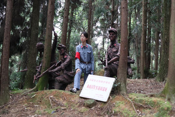 高河鎮的紅軍長征小道全長三公里,實踐隊成員們一步一個腳印,從起點到終點,沒有一個人半路退出。在這條小道上,大家經過了很多有代表性的地點:紅軍亭、紅軍草地、和尚崖紅軍戰壕遺址、爬雪山,最后到了參軍廣場。在這一路上,實踐隊成員們也分享了很多紅軍長征故事:一根扁擔的故事、四渡赤水的故事,血戰湘江的故事。通過重走長征路,實踐隊成員重溫了革命精神,緬懷革命先烈,激發成員的愛國熱情和勵志精神。