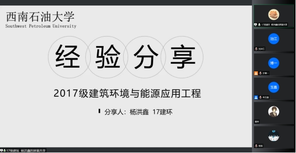 2021年9月16日,土木工程與測繪學院2018級工程管理、建筑環境與能源工程專業順利舉行考研經驗分享會,本次分享會邀請到楊洪鑫與辜勝坤兩位優秀學長為大家答疑解難,分享自己寶貴的學習經驗。