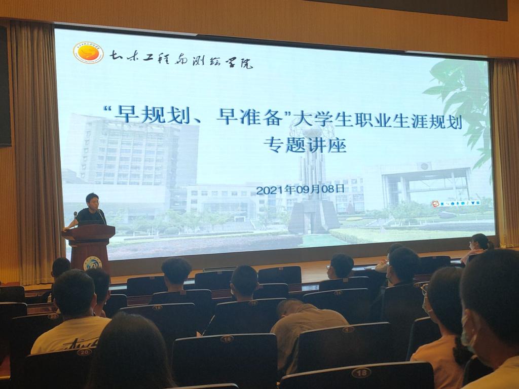 9月8日早,為了給學生們樹立生涯規劃意識,結合學院良好就業環境并培養新生良好擇業觀和就業觀,我校土測院于校圖書館報告廳召開了 “早規劃,早準備”大學生職業生涯規劃專題講座,該講座由土測院21級新生輔導員鄭文磊老師指導,全體學生到場學習。講座開展時同學們踴躍參與互動,講座現場熱火朝天。