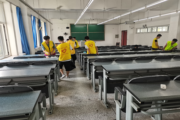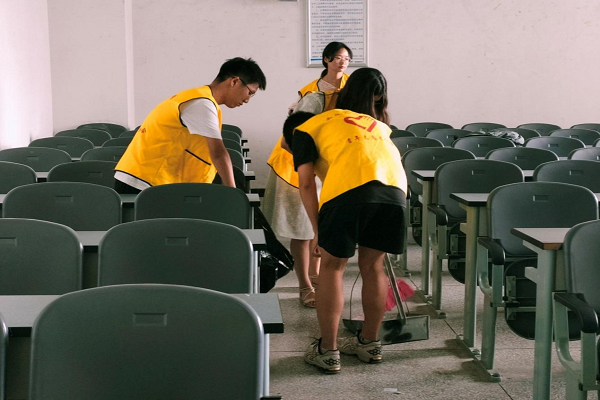 9月2日下午四點,志愿者們準時到達明志樓下集合。本次打掃的地點主要是明志樓3樓A區教室。在活動開始前,負責人組織大家進行簽到和安全事項的說明。然后,志愿者們拿著掃帚、垃圾鏟、抹布等清掃工具前往教室進行清掃。志愿者們有的清掃地面上的垃圾,有的彎腰撿走抽屜里的紙屑和空瓶,還有的志愿者對講臺上的粉筆盒和書本進行擦拭清理。大家認真地清理自己所負責的區域,熱火朝天的勞動現場,充分展現了志愿者們陽光向上,精神飽滿的良好狀態。在大家的共同勞動下,教室又變得干凈,亮堂。清掃活動不僅讓我們學習環境變得干凈,也培養了同學們不亂扔垃圾,愛護校園環境的好習慣。