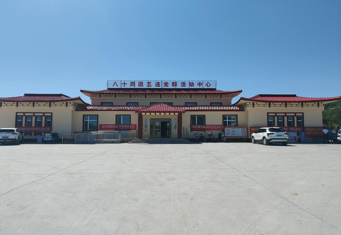 20日上午,進入連隊后,實踐隊來到第五師八十四團五連黨群活動中心,據社區工作人員介紹,這是去年剛新建好的。一座黃色的墻壁,紅色屋頂的建筑,屹立于廣袤無垠的戈壁上,當地居民他們在遇到困難和問題時可以前往這里尋求幫助,這里有相應的辦公區域,每個區域都有相應的連隊干部文員。走進里面時,可以看到各種職能的辦公室整齊排列在走廊兩側,有些民眾正在辦公室里與連隊干部交談。再往里面走,是一個十分大的會議室,會議室里整整齊齊的排列著座位,會議室最前面掛著一個黨徽。社區工作人員告訴實踐隊員,這個會議室真是比以前那個氣派了許多。新的黨群活動中心在一定程度上給五連的老百姓帶來了便利。