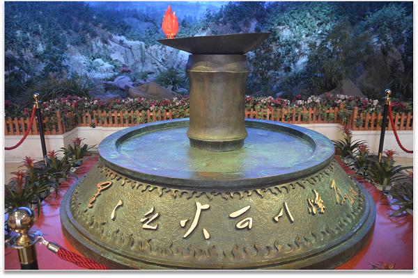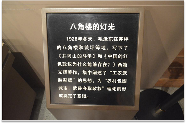 館內運用真人比例幻影成像,為我們重現了當年毛主席、賀子珍在八角樓生活工作的情景,巧妙穿插了“一根燈芯”和“小太陽”的故事,通過錄音以及立體投影,曾經只是以文字形式記載于書本的歷史,也在現代科技的協助下,更加栩栩如生,深入人心。場館內還有許多逼真場景,如:朱毛會師、紅軍洞、黃洋界保衛戰等,都通過人物雕像的刻畫以及背景投影結合,真實地為我們再現了一個又一個震撼人心的場面。