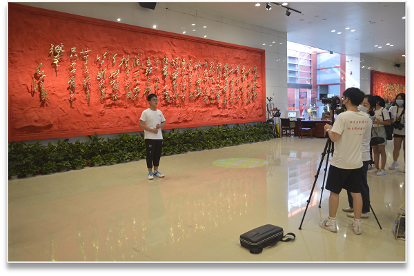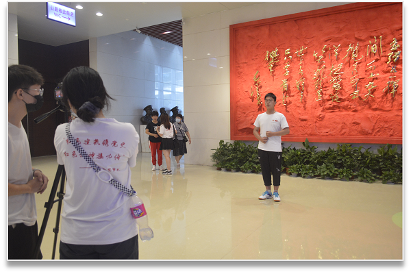 圖為實踐隊員在館內拍攝黨史學習視頻