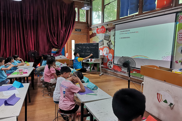一門語言的學習,需要通過視、聽、說三個方面,學生們通過視聽老師的課堂講學,然后課下通過練習能夠流利的用英語來進行日常交流,這樣才算真正學好了一門語言。對于四五年級的同學,因為接觸英語的時間并不長,支教隊員從日常的對話,自我介紹等方面去強化他們的英語表達能力。“同學們,你們覺得用漢語怎樣去介紹自己呢?”支教老師以提問的方式去鼓勵同學思考問題。同學們思考后都開始踴躍的舉手發言。針對他們的發言,老師將其中較為常用的單詞寫在黑板上,開始教學。對于同學們發音有問題的地方,也會特地強調出來。下課后很多同學都來找支教老師來“炫耀”他們學到的東西。考慮到六年級學生小升初的因素,因此支教隊員在聽取孩子們的意見后,決定通過以教學英語歌曲的方式強化他們的口語。支教老師們在給孩子們教學英語歌詞中不斷糾正錯誤的讀音,讓他們可以準確的讀出每一個單詞每一句話,通過不斷地練習同學們在下課前基本都能流利的唱出英文歌曲,輕快的歌曲聲飄蕩在整個學校。