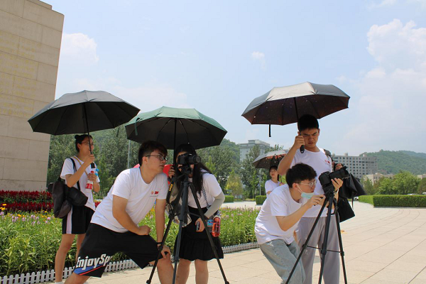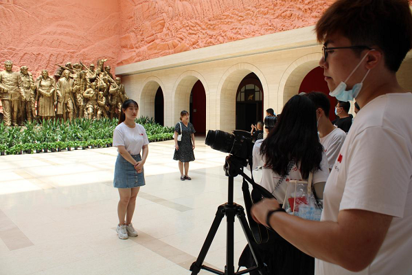 圖為實(shí)踐隊(duì)在拍攝黨史學(xué)習(xí)紀(jì)錄視頻