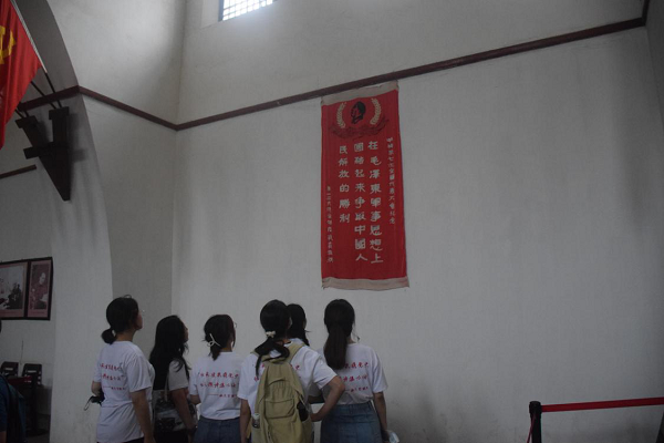 圖為實(shí)踐隊(duì)員在禮堂參觀學(xué)習(xí)