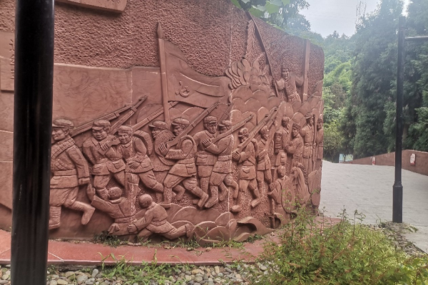 在紀念館正門外是一座雕塑館,這里保存著大量的紅軍長征主題雕塑,生動形象地向實踐隊訴說著長征時期發生的情況,他們以敦實,生動,莊嚴,質樸的形象傳達著其中包含的在艱苦歲月中革命先烈那不屈不撓的斗志。