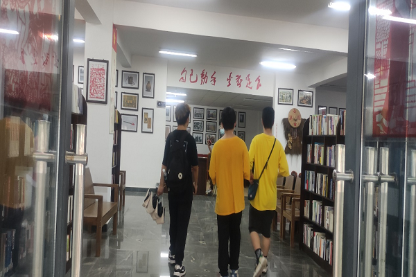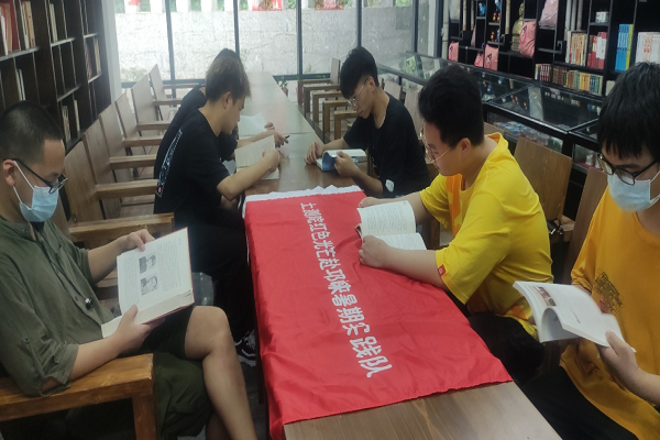 隨后實踐隊一行人進入了一間圖書展廳,在這里保存著大量的紅色書籍,實踐隊從中選擇了幾本意義深刻的書籍進行閱覽,了解更多的歷史史事,學習當中蘊藏的紅色精神。