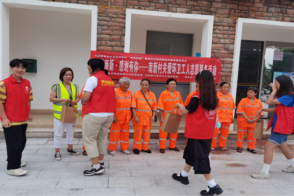 時逢中國共產黨百年華誕,為踐行志愿服務、秉承社會責任、探索鄉村振興精神,土測院下鄉生產隊實踐隊與南新村村委會社工一同于7月16日開展了以“一個小舉動,溫暖一座城”“悅美南新·感謝有你”為主題,于天府新區永興街道南新村進行關愛環衛工人志愿服務活動。