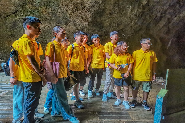 最令人人印象最深刻的就是溶洞,去過的游客都說好!在洞口時強烈的寒風便迎面襲來,如同天然的冰箱,繼續向里走也是別有洞天,“一線天”之下實踐隊員們看到了以前游擊隊居住的床鋪,這里相當潮濕很容易生病,在那個藥物不太充足的年代,這會讓游擊隊的生活雪上加霜,實踐隊員們更加感嘆先烈們偉大的愛國精神。
