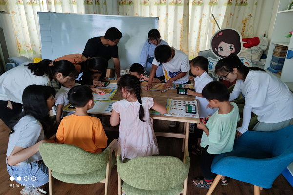 語文方面主要體現在孩子們的理解能力較弱,實踐隊隊員耐心地對題目進行分析,逐步引導孩子理解題目,孩子們能根據圖片進行簡單的寫話。