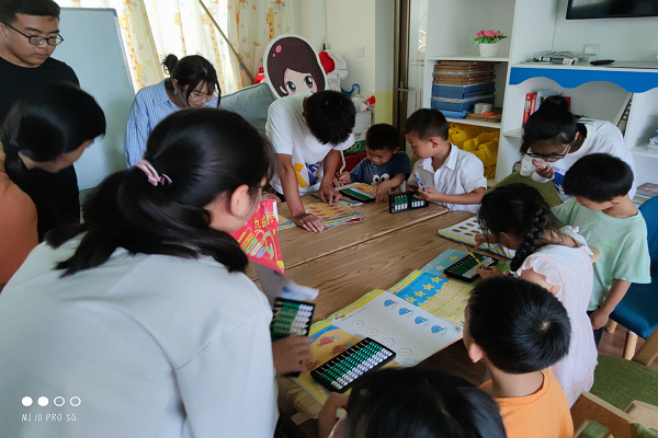 數學方面,實踐隊幫孩子進一步強化了珠心算能力。所謂珠心算,即珠算式心算。珠算,是以算盤為工具,進行加、減、乘、除、開方等運算的計算方法。其運珠技巧有一定的規律及口訣,當使用者能熟練操作算盤,除了會快速的求出正確答案外,也能將算盤的盤式、檔次及算珠的浮動變化描繪到腦子里,這種活算盤的影像,稱為“虛盤”。它透過知覺,形象,記憶等過程,在大腦里來完成珠算運算,即所謂珠算式心算。珠算式心算,其速度之快非常驚人。往往只要聽到題目報數,或自己看到計算題型,算者即能將答數脫口而出,或立即寫出。