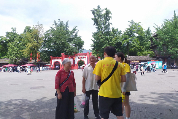 9日上午,面對突如其來的大雨,實踐隊聯合都江堰景區進行文明引導、游客疏散等志愿服務。此后,實踐隊結合都江堰水利工程的建設,在室內向游客發放以水資源為主題的宣傳單并進行相關知識講解,深入普及水資源相關的環保理念。下午,實踐隊在景區尋龍觀兩側道路旁進行了“綠色發展”主題宣講活動,游客紛紛駐足聆聽,使綠色發展理念深入人心,鼓勵大家用實際行動去建設美麗中國。