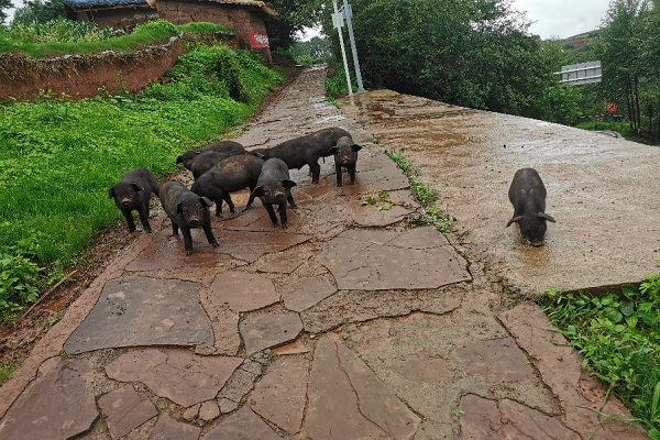 圖為三河村放養的烏金豬